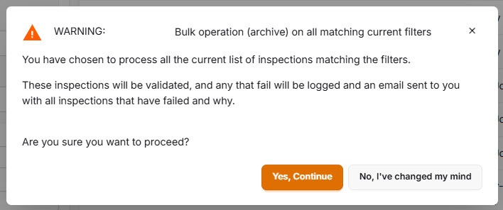Note: If you have selected inspections using the tick box to the left, the ‘Bulk Operations’ button will be disabled.
