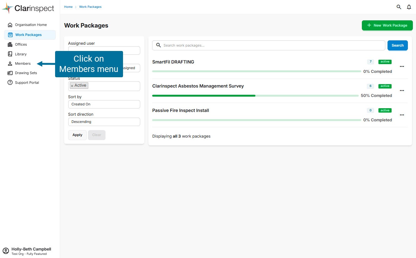 Can do all that the User can, and can also change the role of organisation members. Can assign and re-assign between assessors. Can create an entirely new Work Package, and can fully edit existing Work Packages.