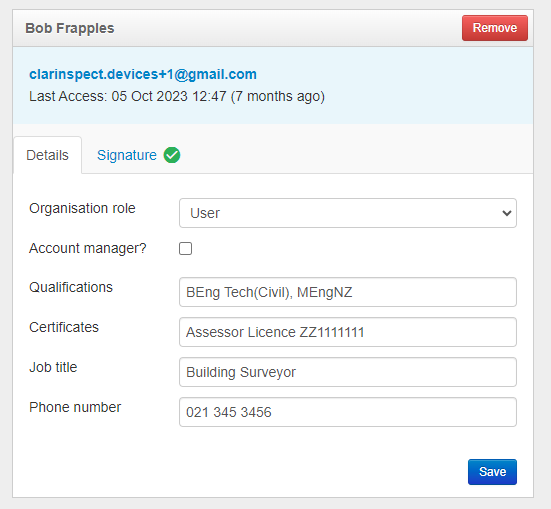 Only staff with the role of Admin can edit the fields on members such as qualifications, certificates, job title etc. Note these will not appear in reports unless this has been set up by Clarinspect.