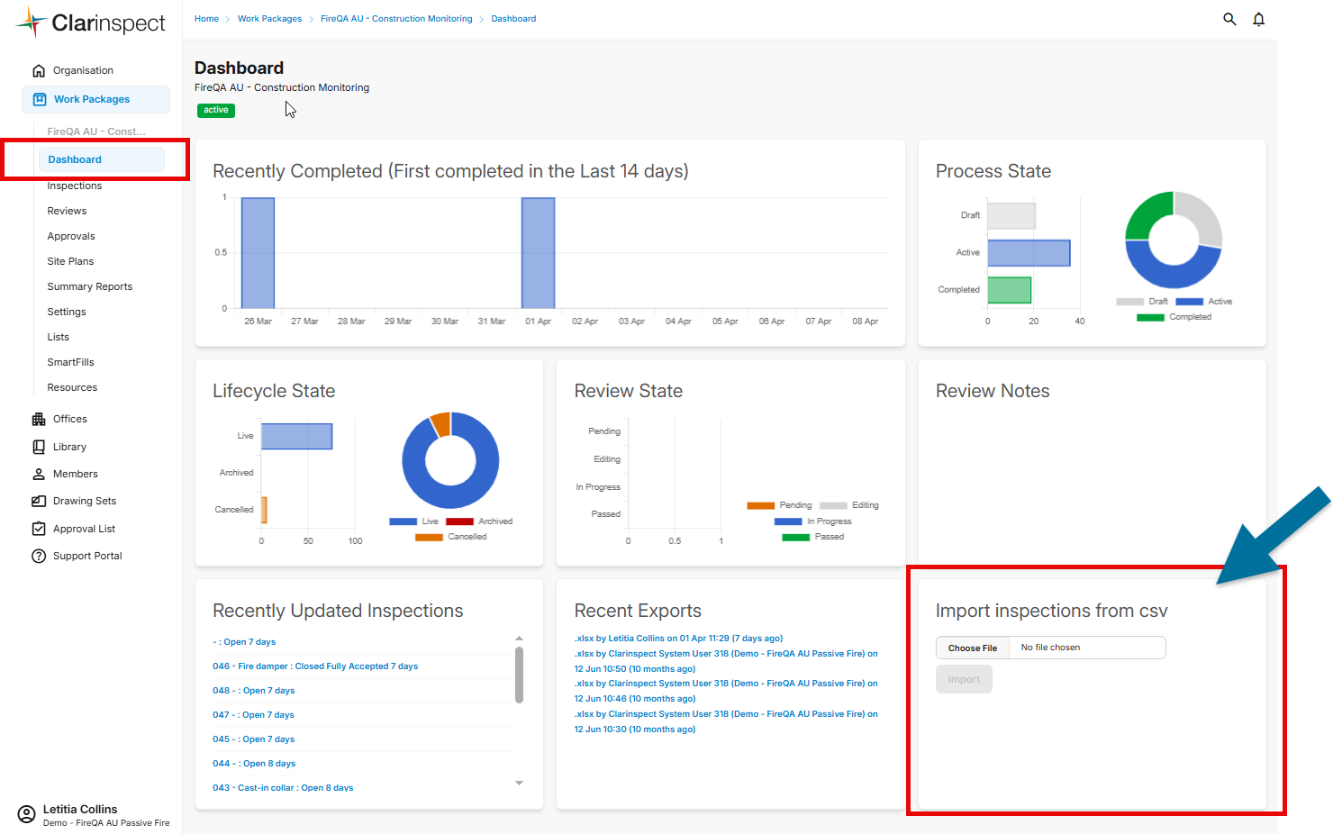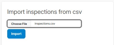 Open the Dashboard. Go to “Import inspections from csv” on the lower right side of the screen.