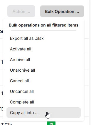 Press the ‘Choose Action’ button in the ‘Actions on Filtered Items’ box on the right hand side