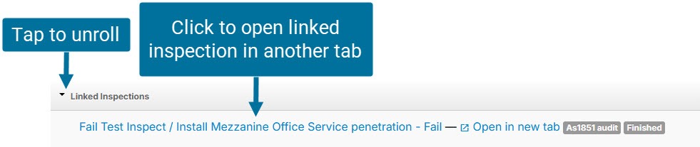 Inside an inspection, if it has links to other inspections there will be a list near the top below the history.