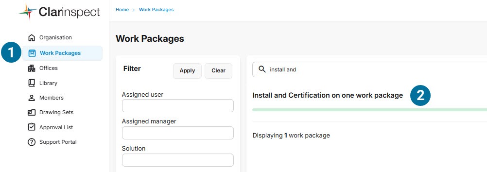 Click on the 'Work Packages' link in the Left Menu to show the Work Package List.