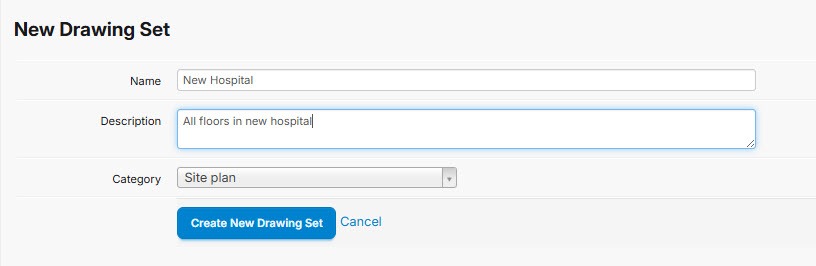 Give the Drawing Set a name (e.g. New Hospital) and a description - what it is here for and how it should be used?