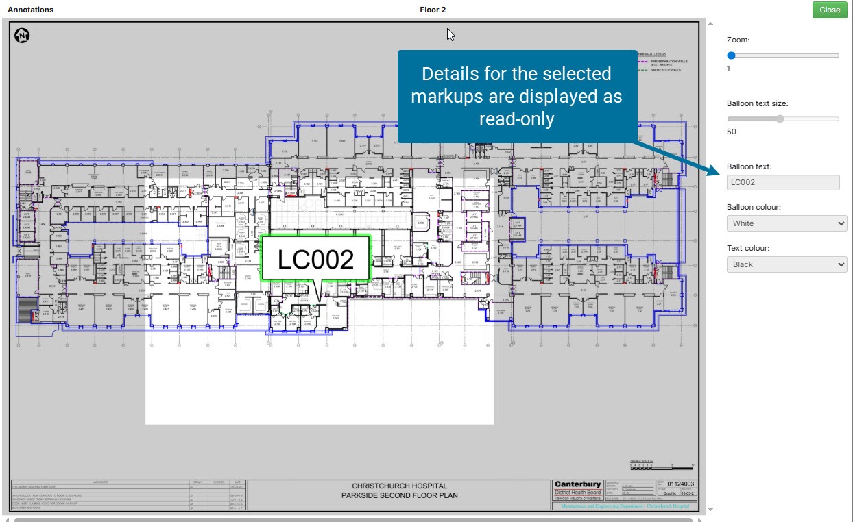 Any markups which have been done to images or site plans, either in the app or on the hub can be viewed and edited in the hub. This allows you to do some markups quickly in the app, then clean them up later on the hub.