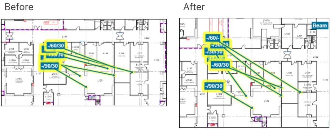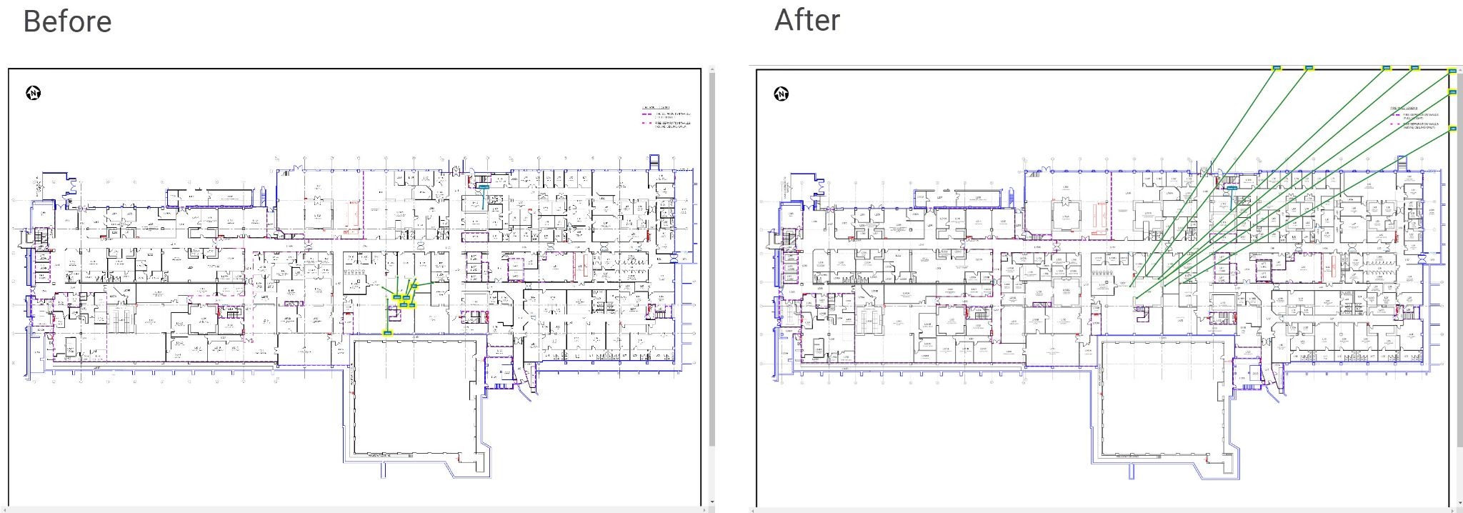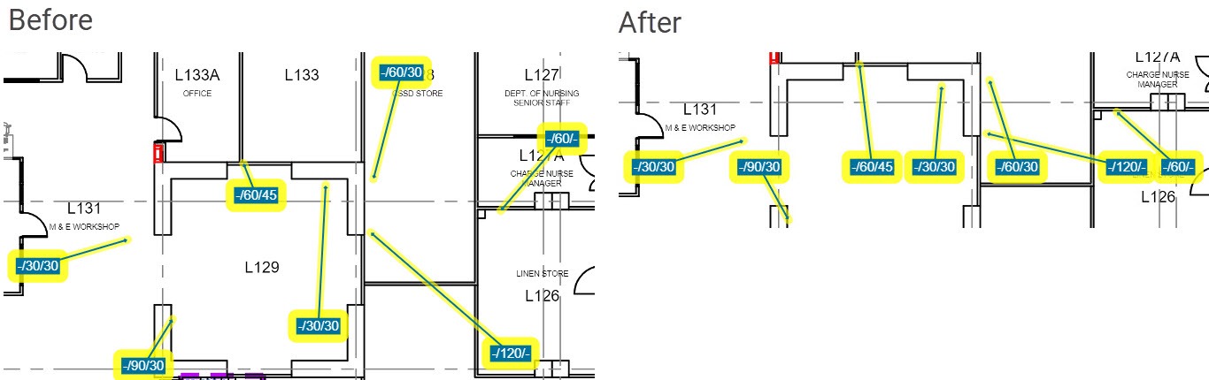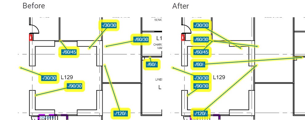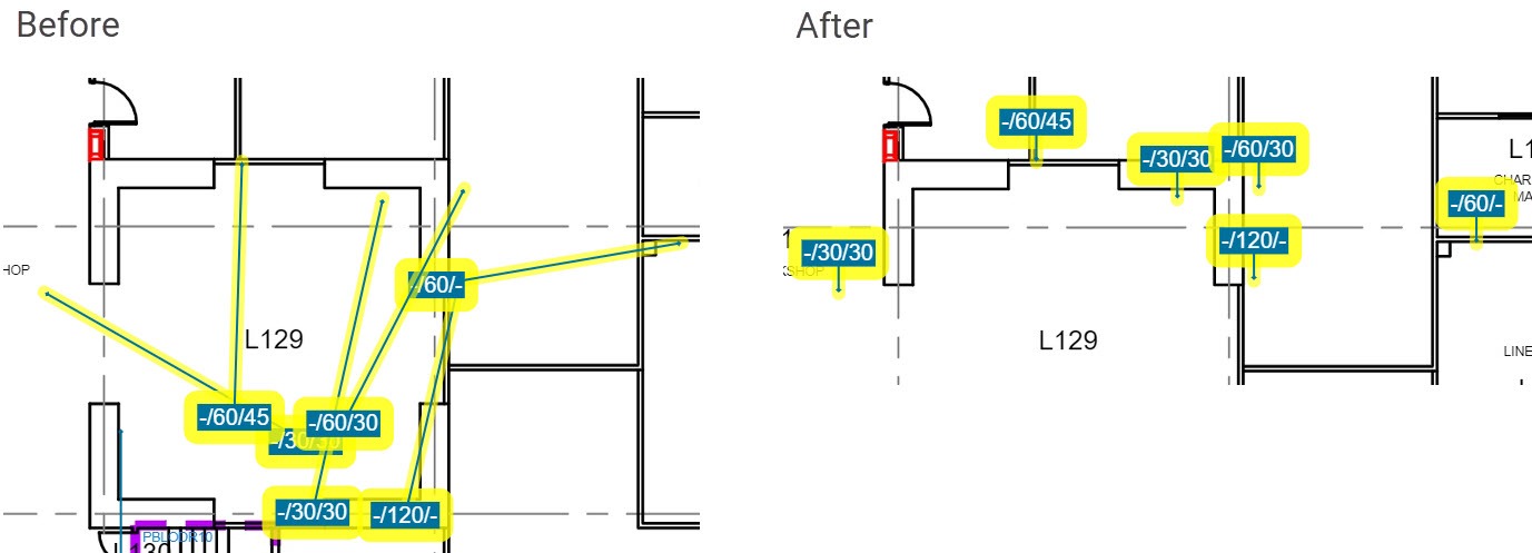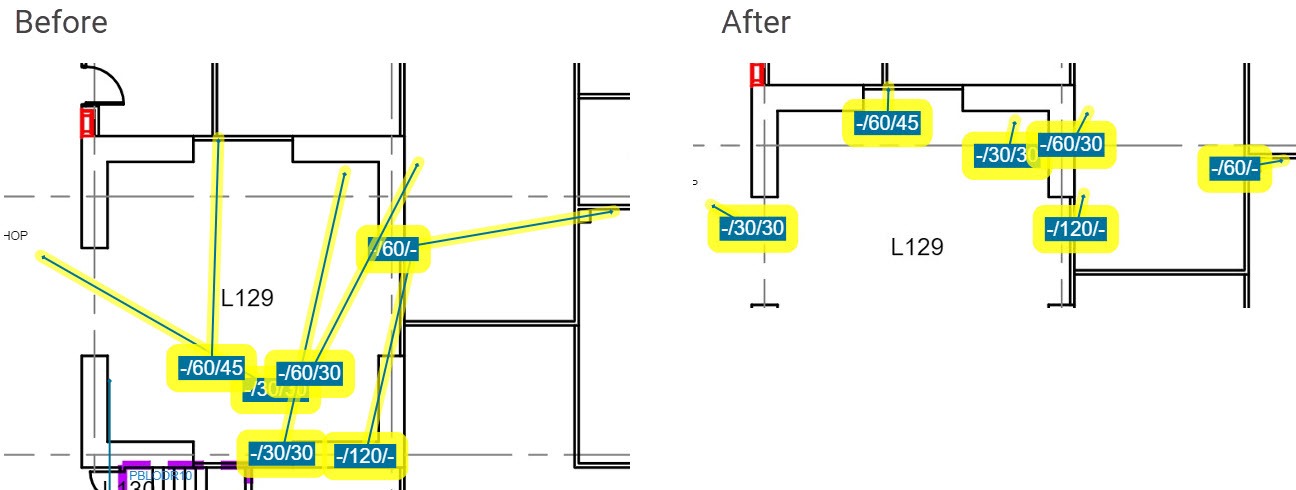 High density merge #1 - This is the first 'combination' function that will do several of the other transformations in one go. The intent of this 'Arrange Action' is to give you a good head start when the floorplan is covered in hundreds or thousands of markers.