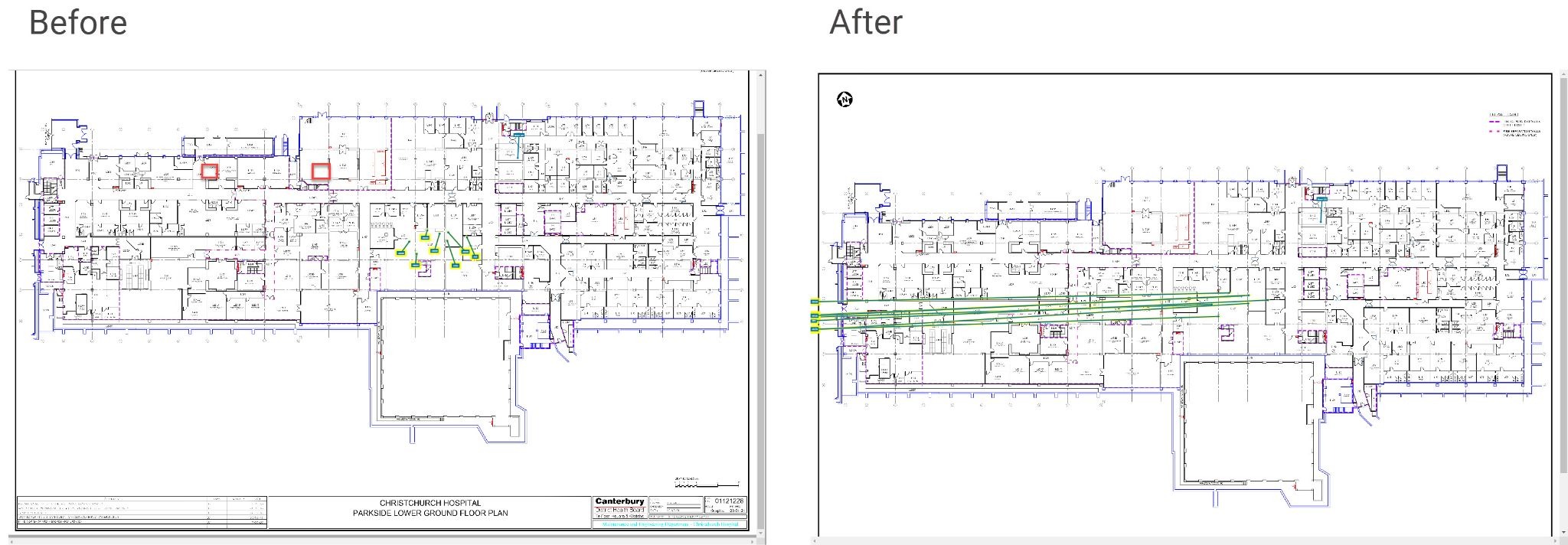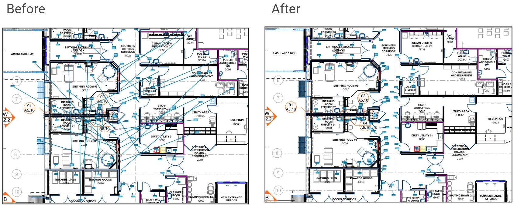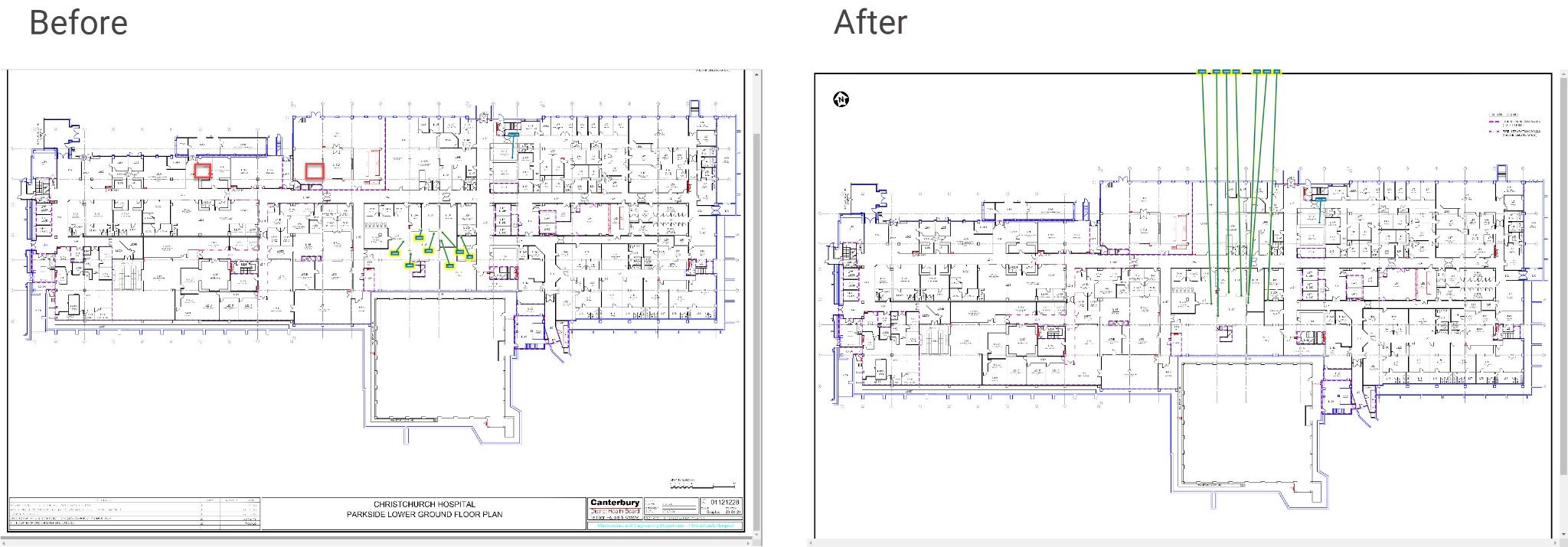 High density merge #1 - This is the first 'combination' function that will do several of the other transformations in one go. The intent of this 'Arrange Action' is to give you a good head start when the floorplan is covered in hundreds or thousands of markers.
