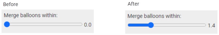 The Merge Balloons control is on the main Drawing as well as the Rearrange... screen. This processes all the Text Balloons, and works through them all and creates a single Text Balloon for all the points that are close together.