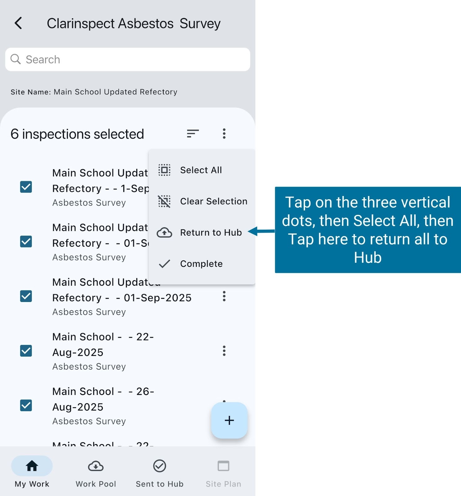 Ensure that all inspections have been returned to the hub