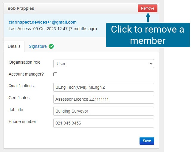 Removing the member from your organisation