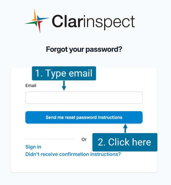 Type in your email address, then click on the blue bar ‘Send me reset password instructions’.