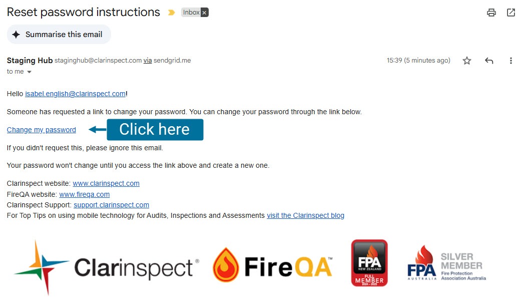 Clicking the link in the email will send you to the ‘Change your password’ screen on the Hub
