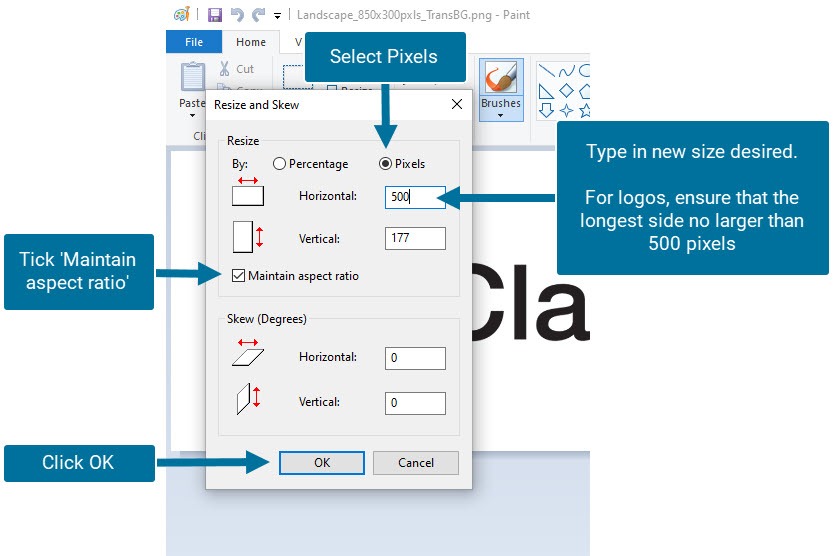 NOTE: if resizing a logo, the longest side must be no more than 500 pixels.