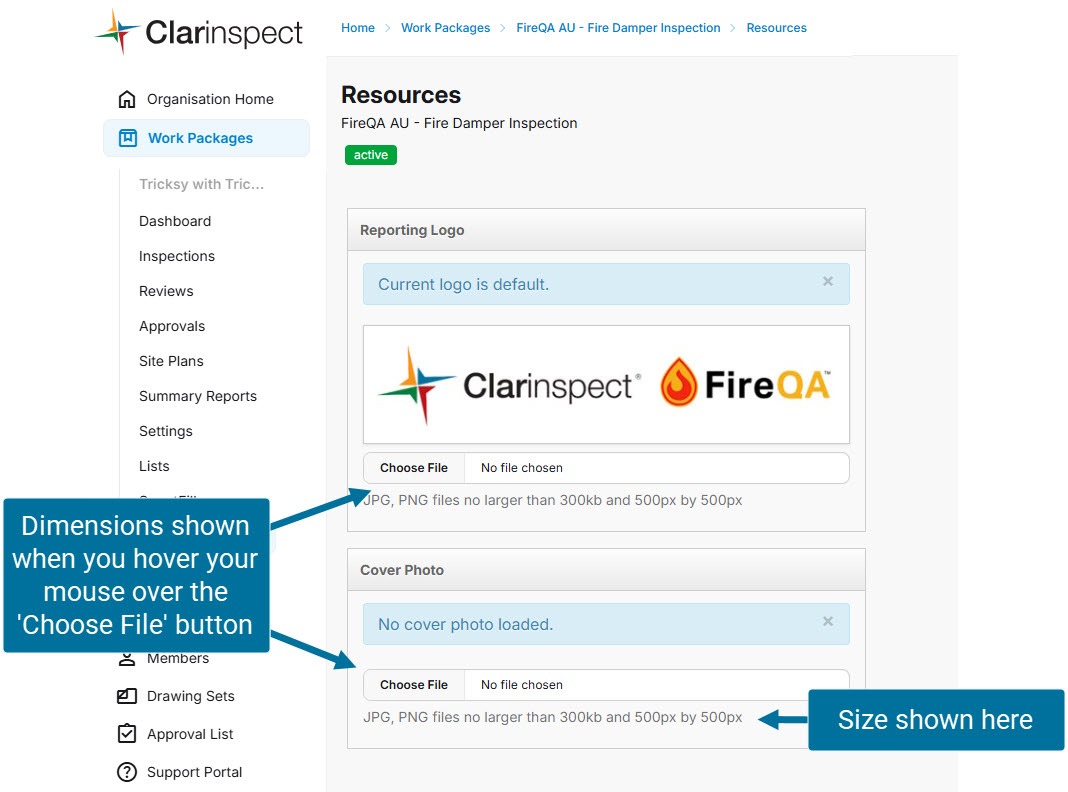Your Logo should be set in Organisation Home, or can be customised for the Work Package in the Resources tab.