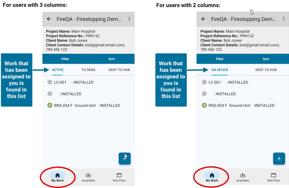 Work that has not been individually assigned, but is in the available work pool can be found in the ‘Available’ tab. These must be downloaded to your device before they can be used.