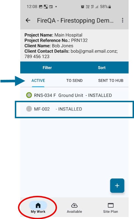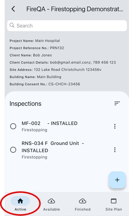 Once downloaded, the work will be found in the list of Active inspections, as shown below.