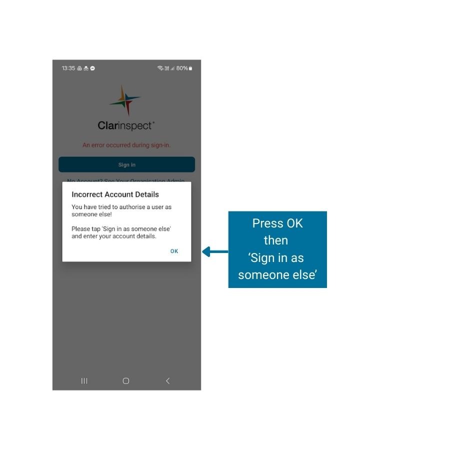 If you are sharing a device with more than one Clarinspect user, the first time someone logs in they will follow the original Sign In process.