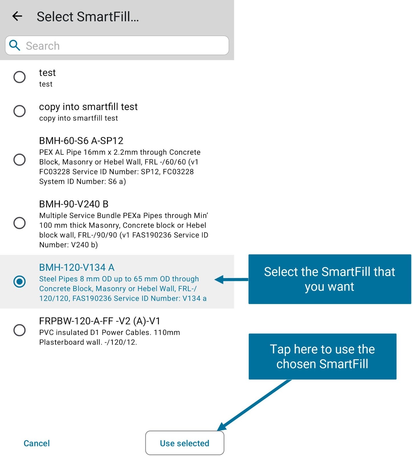 Select the SmartFill you want. You can also search for a SmartFill using the search bar at the top.