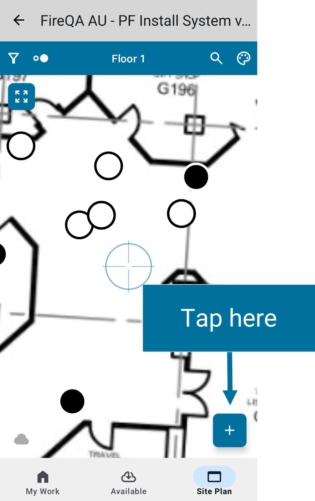 To add a SmartFill from Site Plan, tap the Site Plan button, zoom into the Site Plan so that the ‘+’ comes up, then tap on the ‘+’.